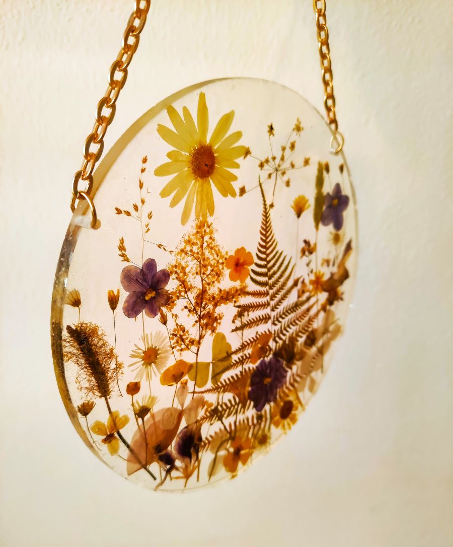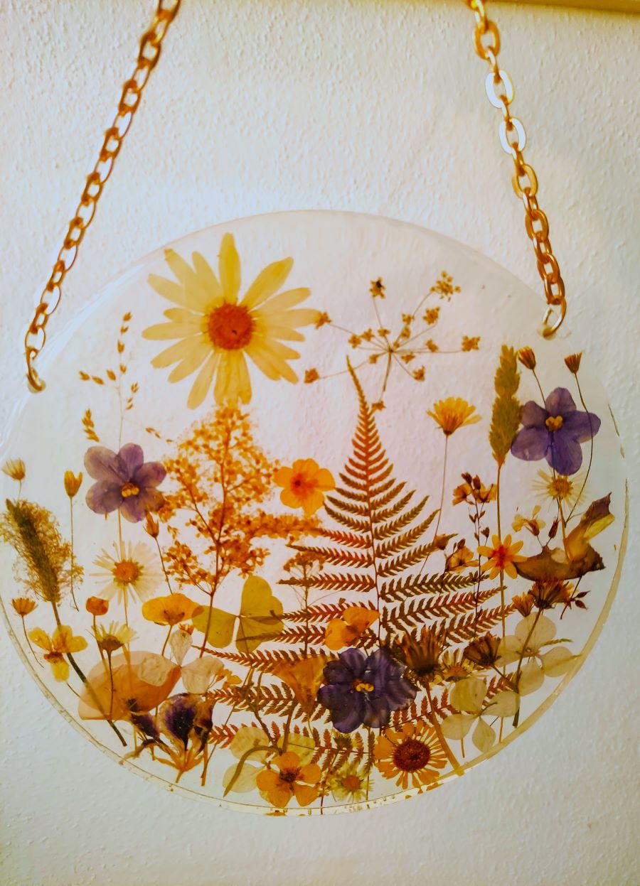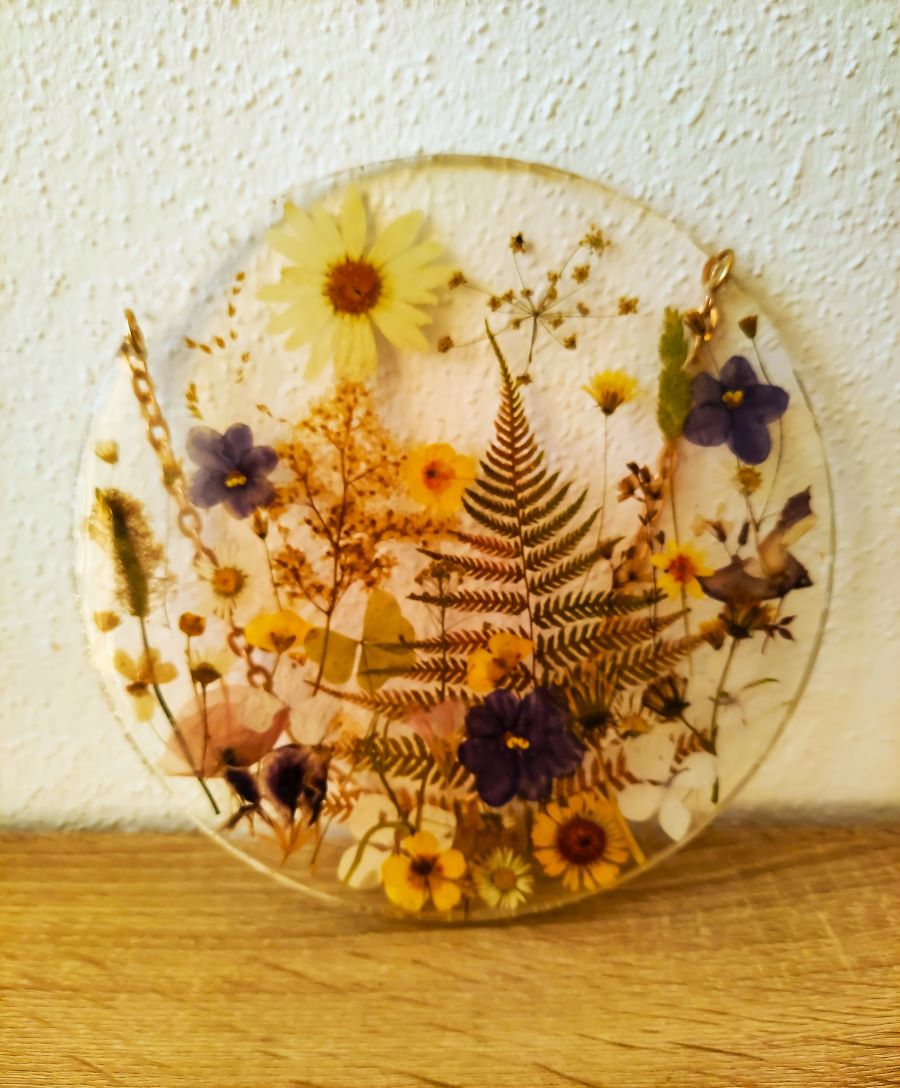 🍀A round 20 cm epoxy resin floral wall panel on a chain will wonderfully decorate any of your living space, as well as will be a memorable gift for any occasion.